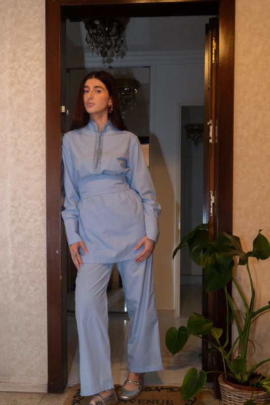 ÉpuiséZAHARA bleu set en lin