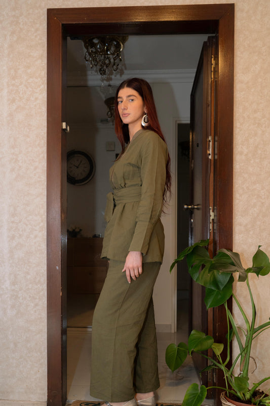 ÉpuiséDERYA vert set en lin